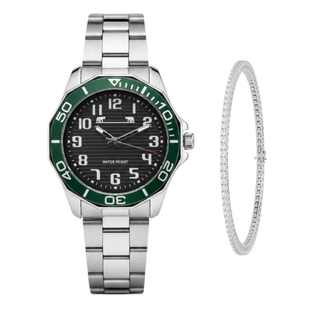Design rafinat cu afișaj minimalist – cadran verde kaki texturat și markeri metalici pentru un aspect sofisticat și luxos.